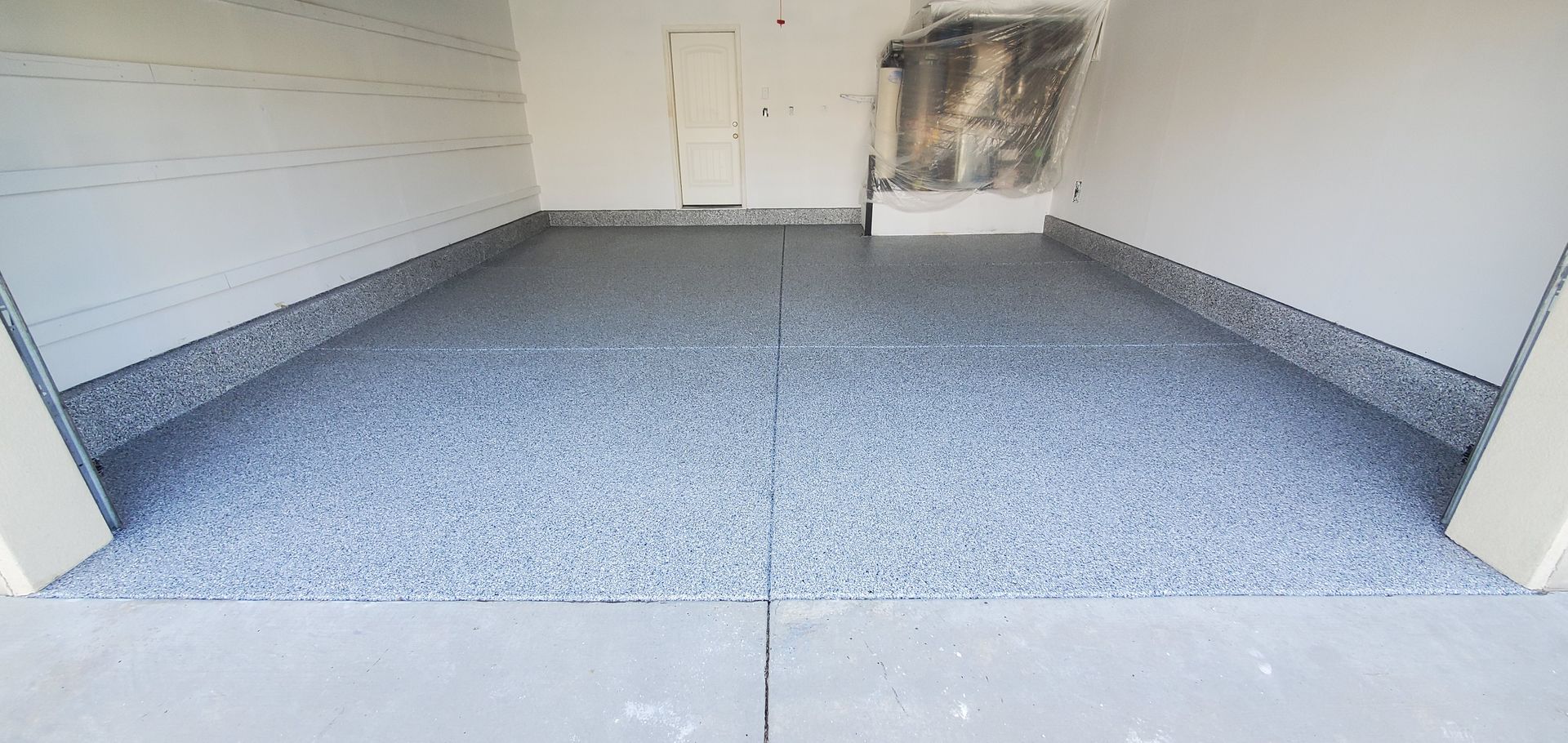 Epoxy Flake Flooring is a customer favorite! Flake flooring is a dynamic solution that seamlessly blends aesthetic appeal with unmatched durability. The benefits of epoxy flake flooring extend beyond the visual realm, providing a durable surface that is capable of enduring high volumes of traffic and daily usage without showing signs of wear and tear. The unique combination of epoxy and decorative flakes not only gives a beautiful look, but increases durability for a long-lasting product. This makes epoxy flake flooring the perfect choice for areas where safety and beauty come together. Apart from offering protection, the epoxy flakes simplify maintenance, resulting in a pristine, effortless-to-clean, and stain-repelling surface. We highly recommend epoxy flake flooring in garages and gyms.